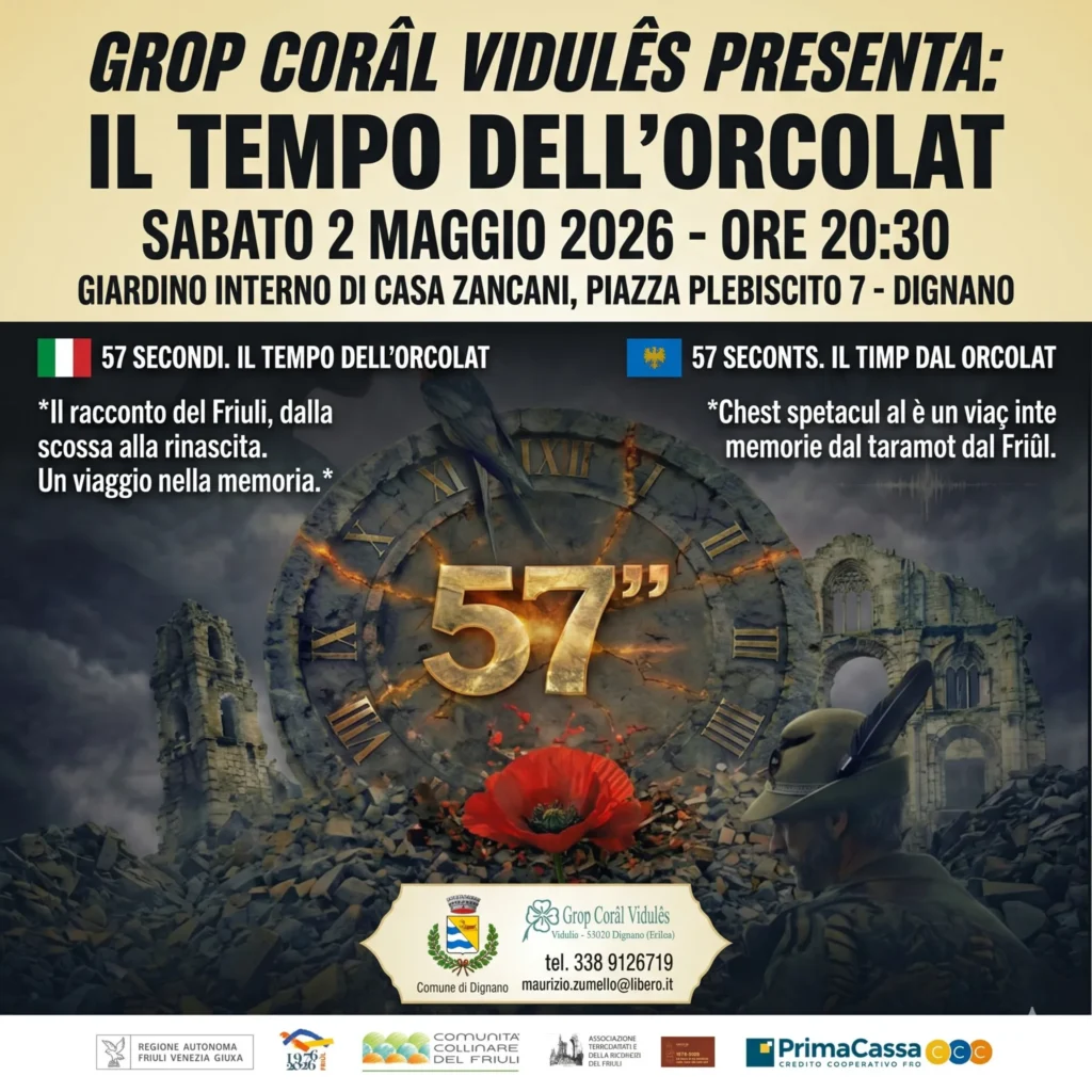 Il Grop Corâl Vidulês presenta “57 Secondi. Il tempo dell’Orcolat”